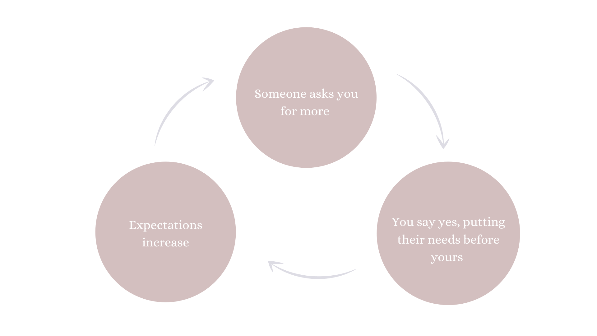 One of the key problems in having bad boundaries at work are captured below in this diagram. It may not initially feel like a problem to work late, or say yes to that work. Especially if you enjoy the work. However, the problem lies in the consequences that follow as a result of this attitude.